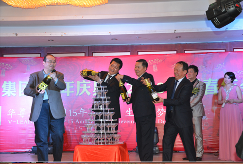 隨后,舉行了盛大的15年慶祝儀式,集團董事長張達,蘭州公司李華、楊繼膺,集團公司劉軍德四位領導將香檳塔斟滿,并與全場員工共同舉杯,同慶集團輝煌的15年。
