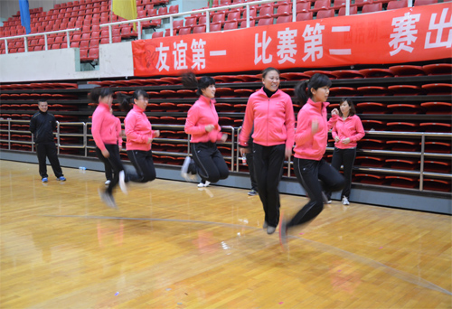 8人的集體跳繩比賽對(duì)運(yùn)動(dòng)員的耐力和齊整度是一個(gè)不小的考驗(yàn),我公司參加運(yùn)動(dòng)員完成了49次的有效好成績!