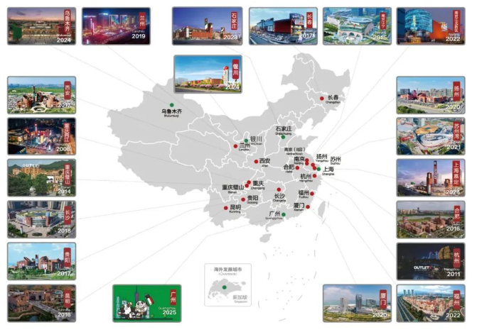 截止2024年,砂之船集團(tuán)在重慶、杭州、南京、合肥、昆明、長(zhǎng)春、西安、貴陽、長(zhǎng)沙、蘭州、揚(yáng)州、廈門、蘇州、福州、烏魯木齊等19個(gè)直轄市、省會(huì)城市或高速發(fā)展城市簽約落地21家大型超級(jí)奧萊,目前運(yùn)營著17家超級(jí)奧萊。